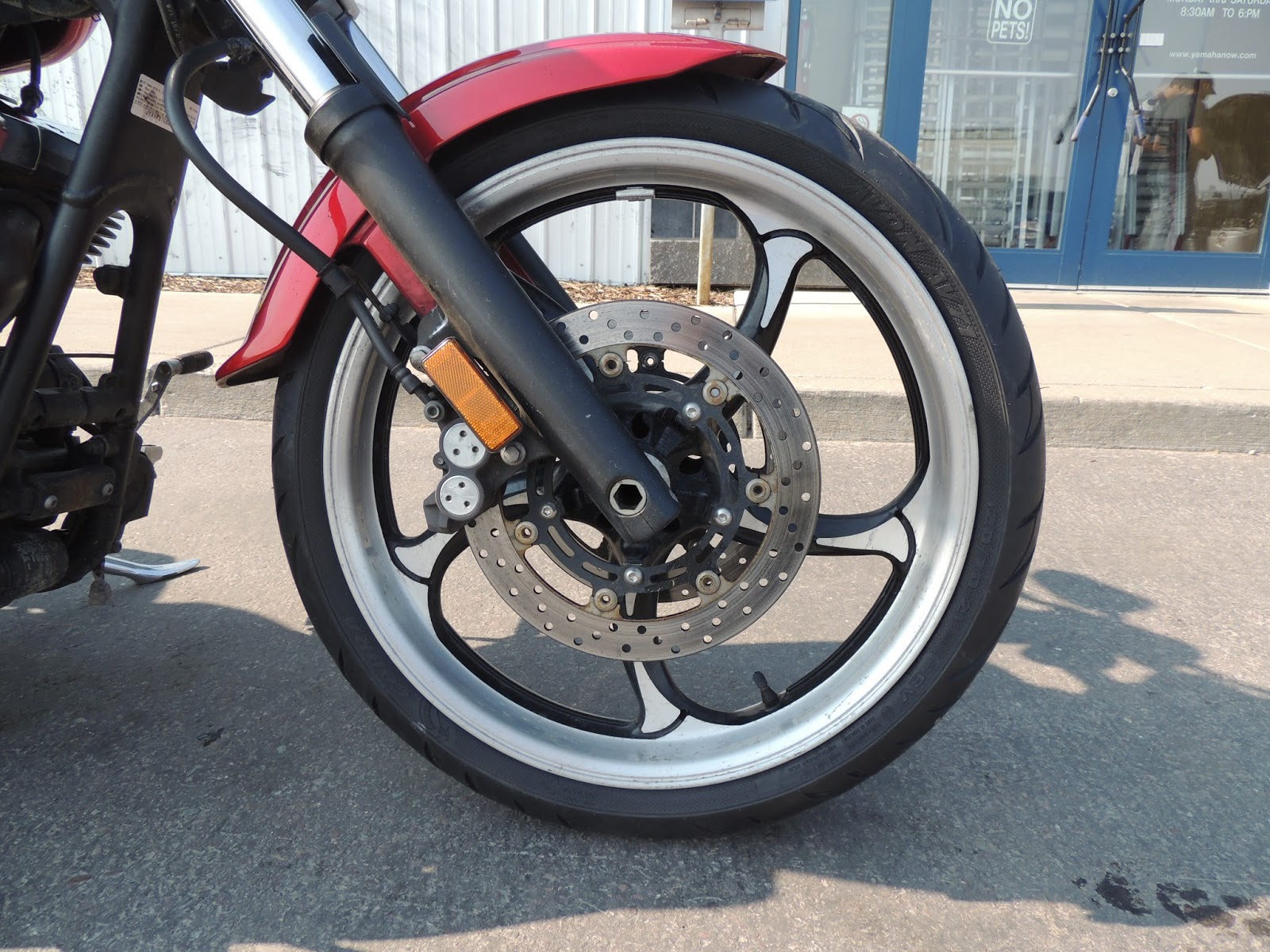 But... as time wore on... an unusual thing was noticed... the front tire was wearing unusually fast. A Raider with its 113 cubic inches of Bad Attitude has a reputation for stripping the rubber off a BACK tire.